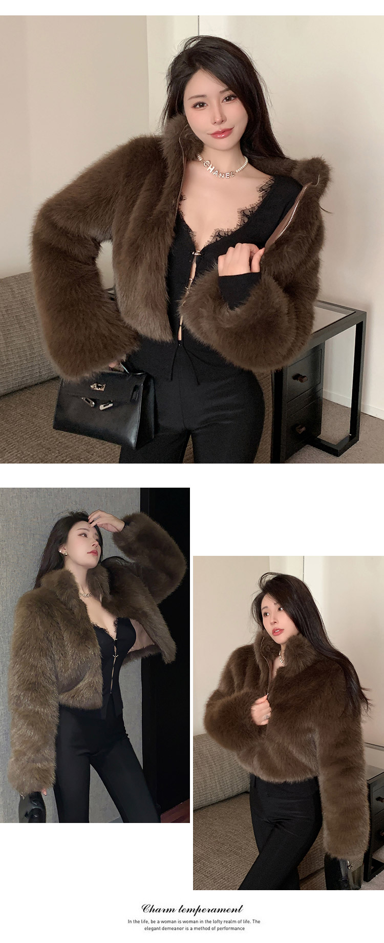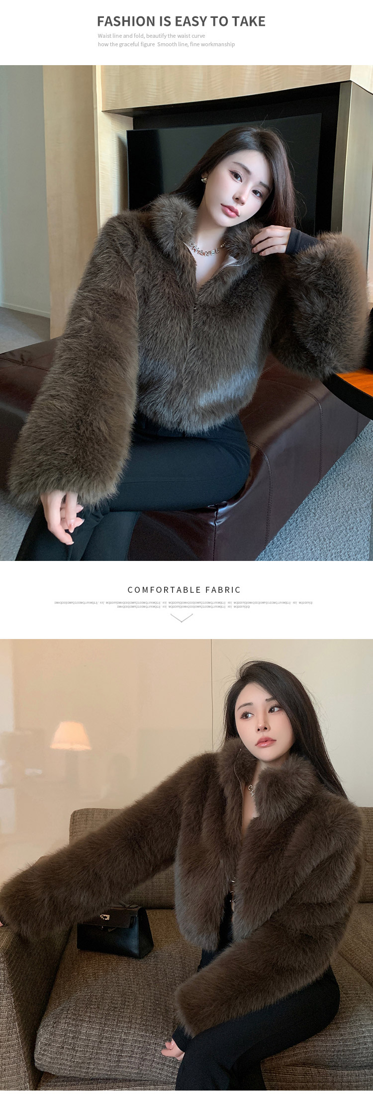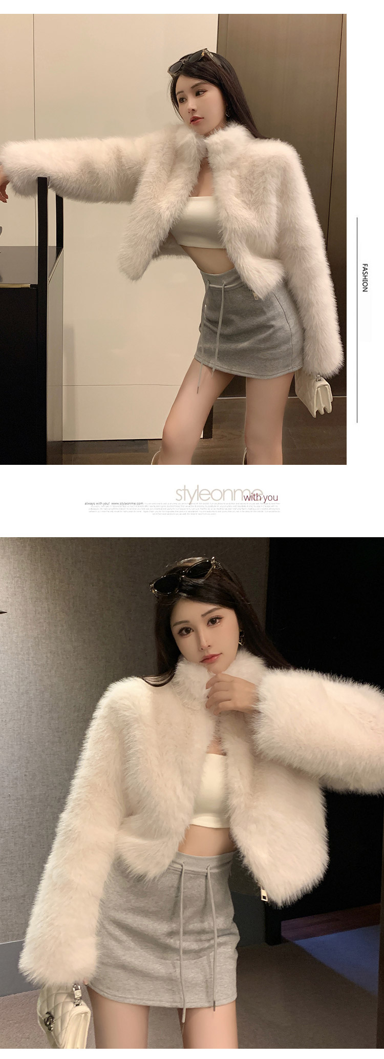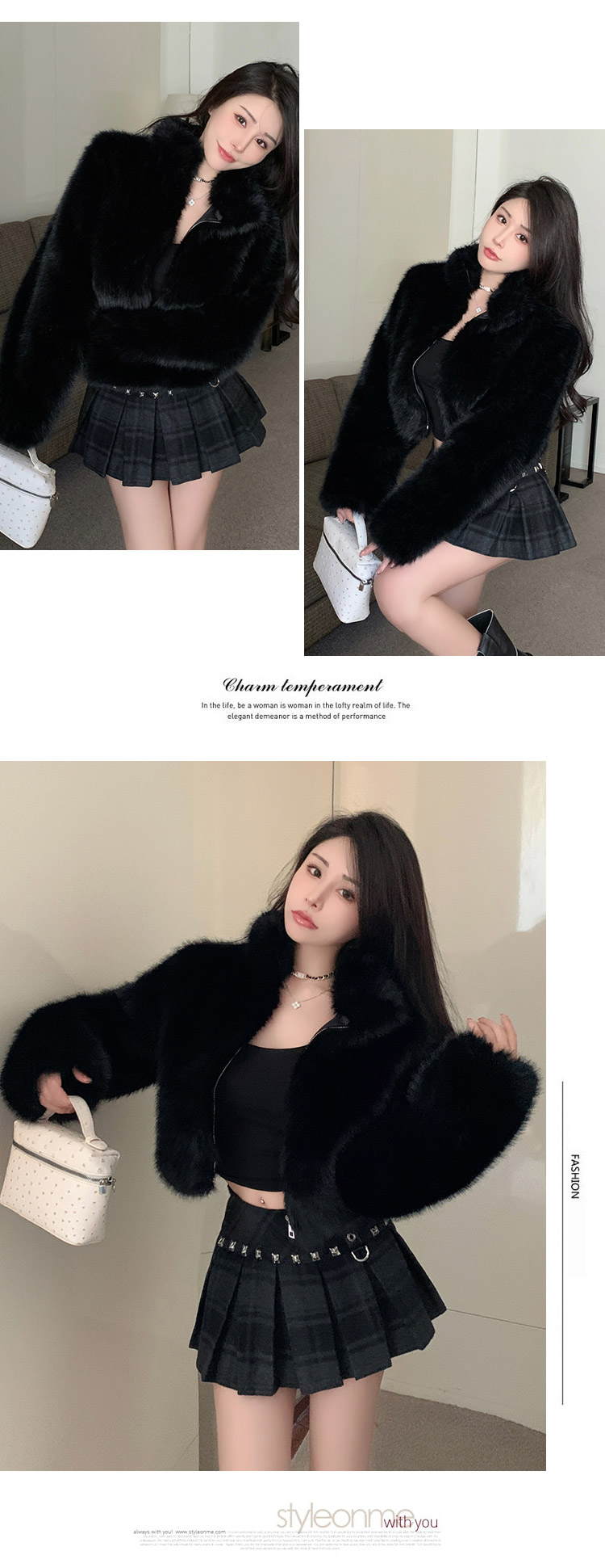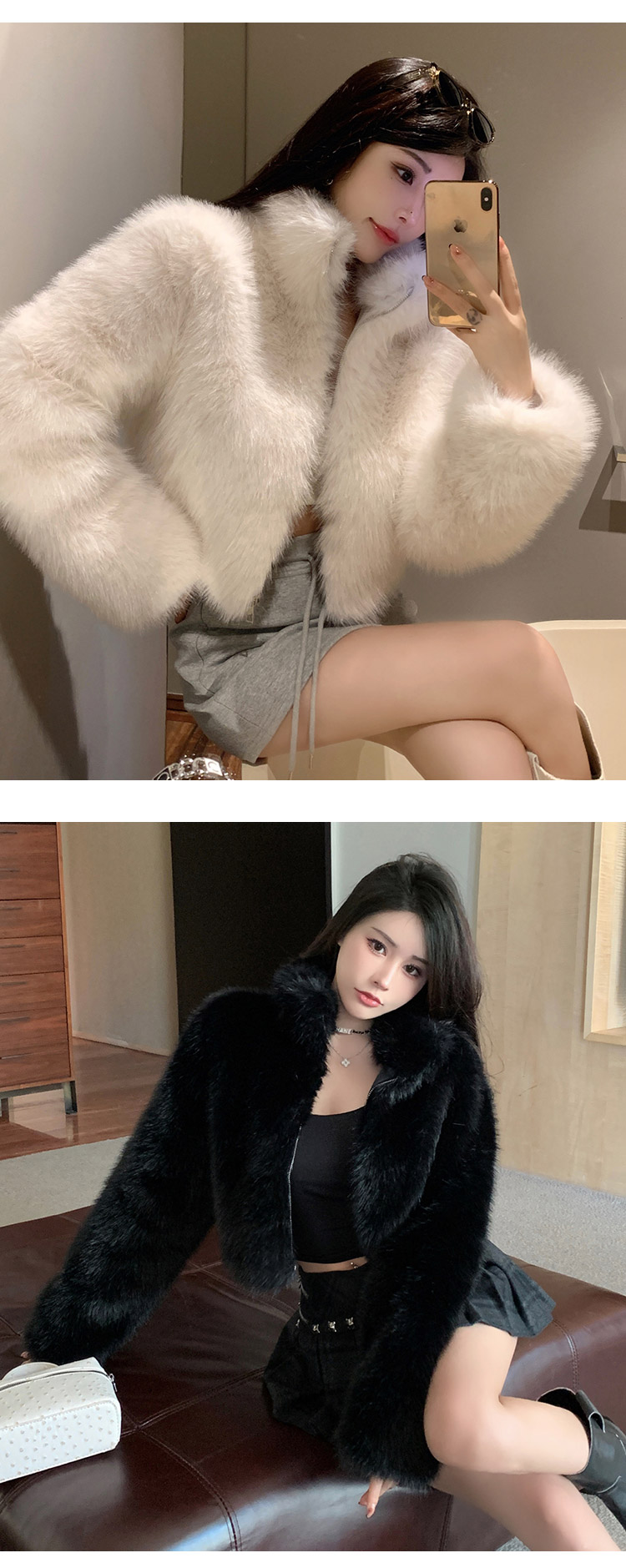 Faux Fur Jackets Autumn Winter Luxury Stand Collar Faux Mink Fur Party Club Zipper Coat Vintage Solid Furry Outerwear