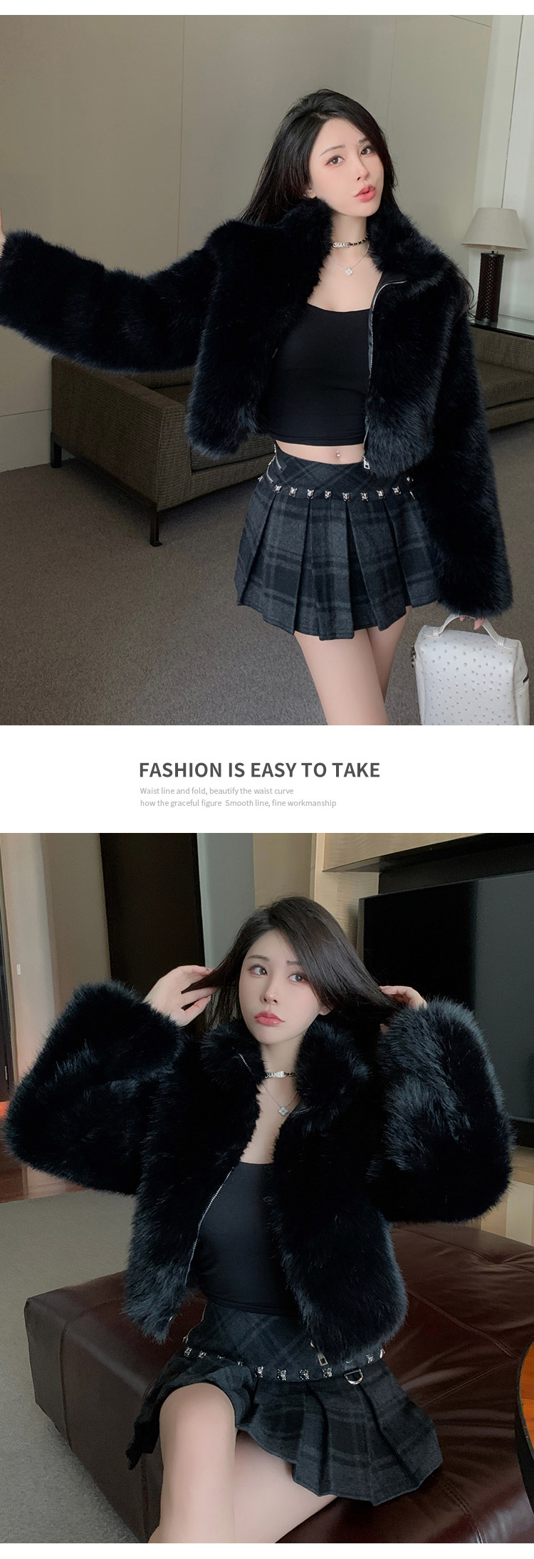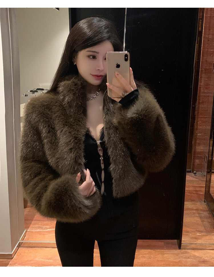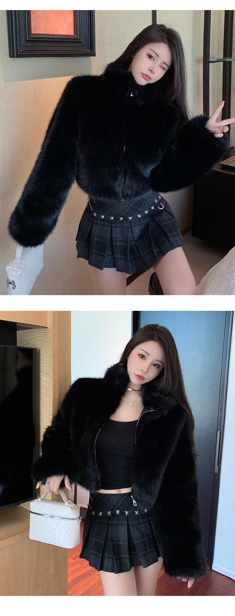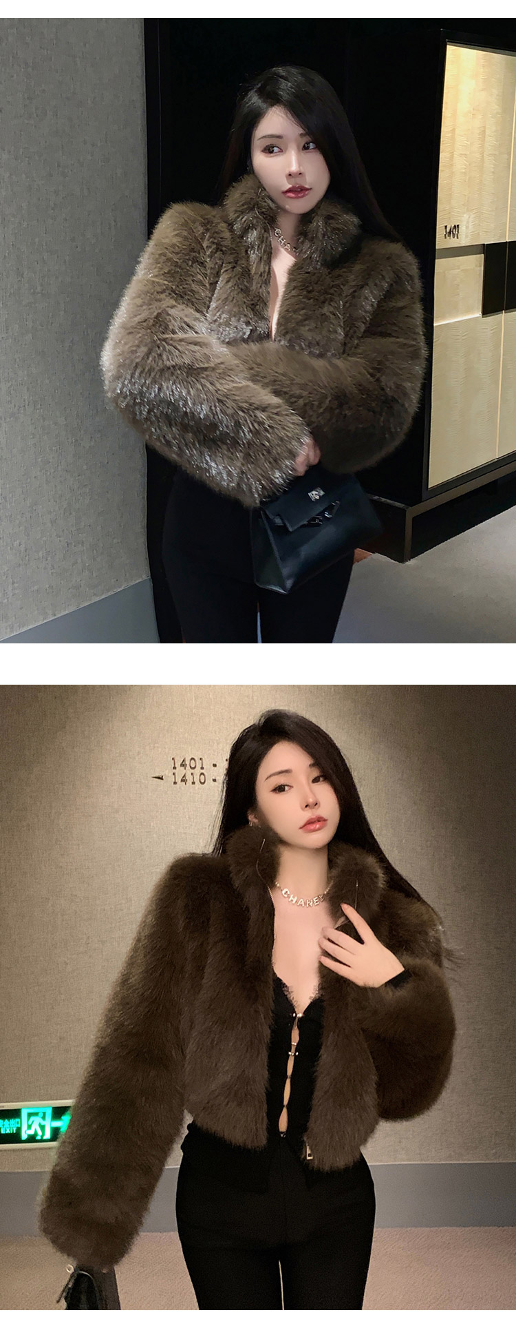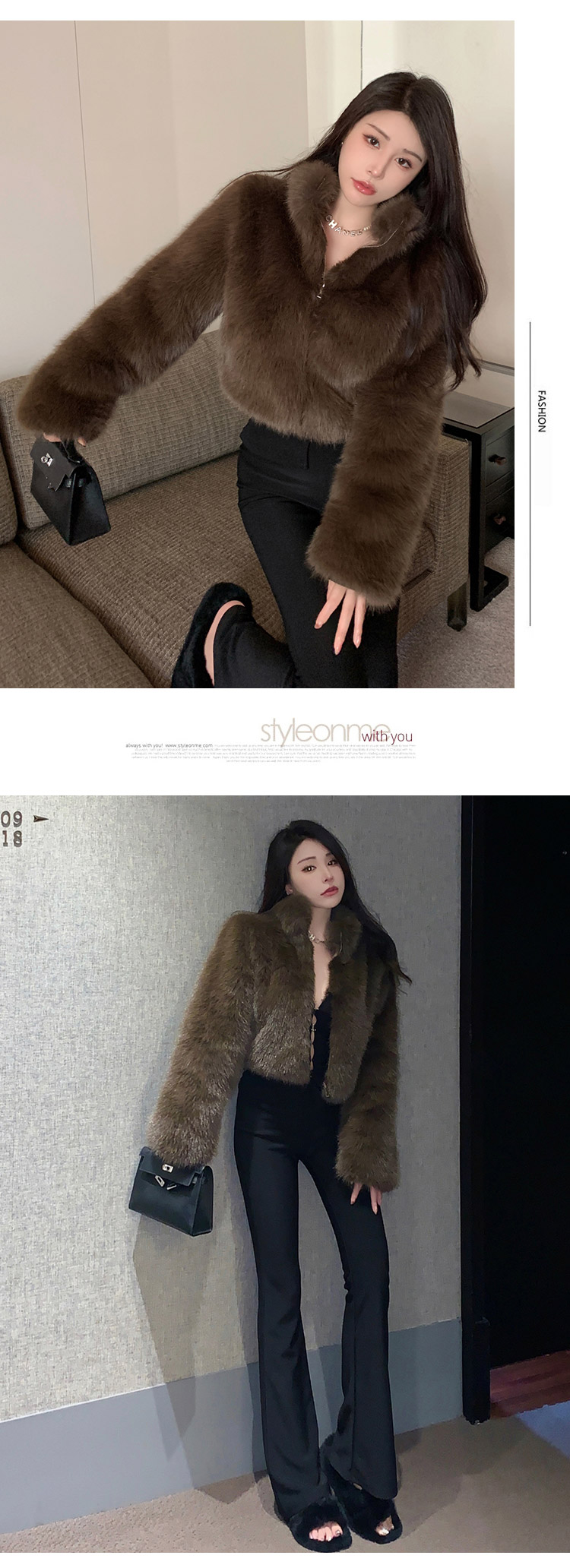 Faux Fur Jackets Autumn Winter Luxury Stand Collar Faux Mink Fur Party Club Zipper Coat Vintage Solid Furry Outerwear